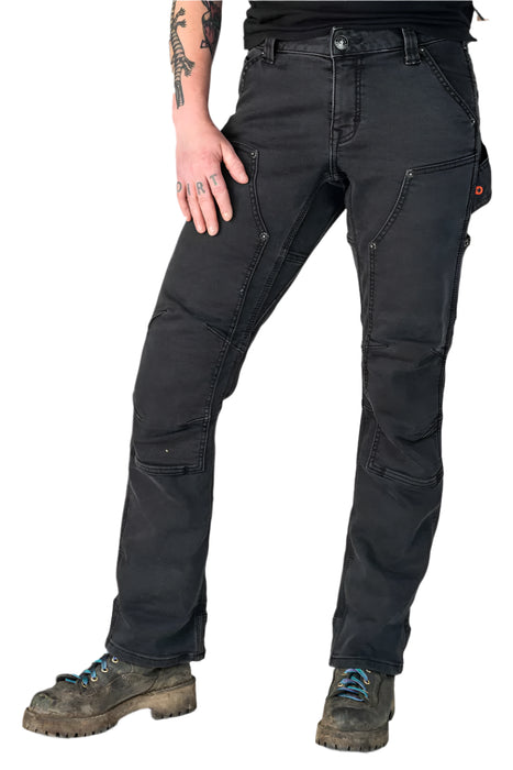 Built for winter, this Britt is lit. We've taken our most technical pant and warmed her up. We said warm, not bulky. This new all-in-one thermal denim is a fully integrated hybrid. We're talking 1 fabric, 2 feels: tough face to the world, cozy on the skin. Recycled insulation thermoregulates and does a solid for the planet, keeping you toasty but never roasty. Because you're not bulked up, you're free to move, stretch, and bend it like our buddy Britt, a builder who speaks her mind and wastes no time. So go. Get it done.