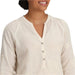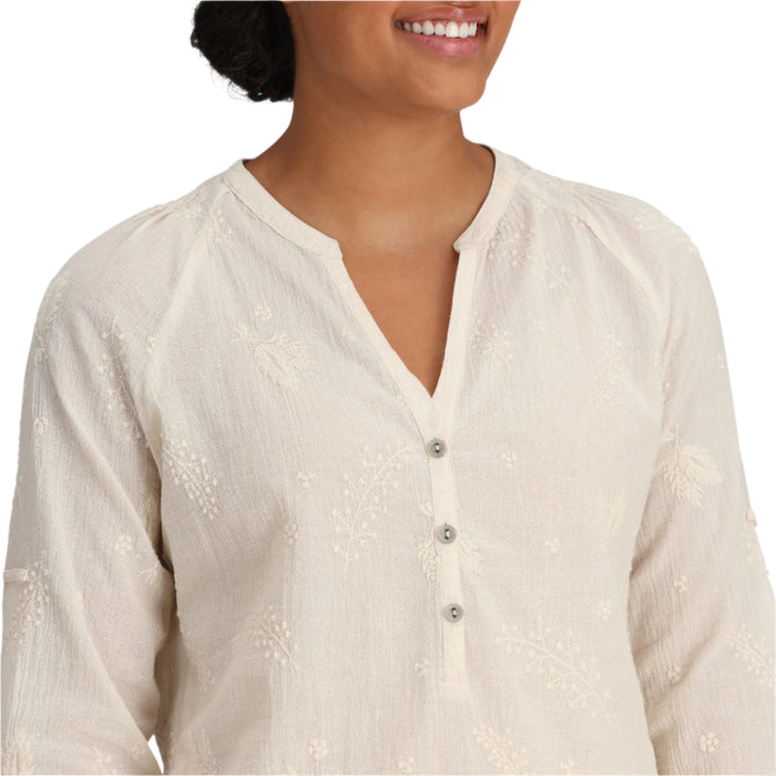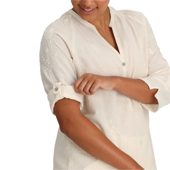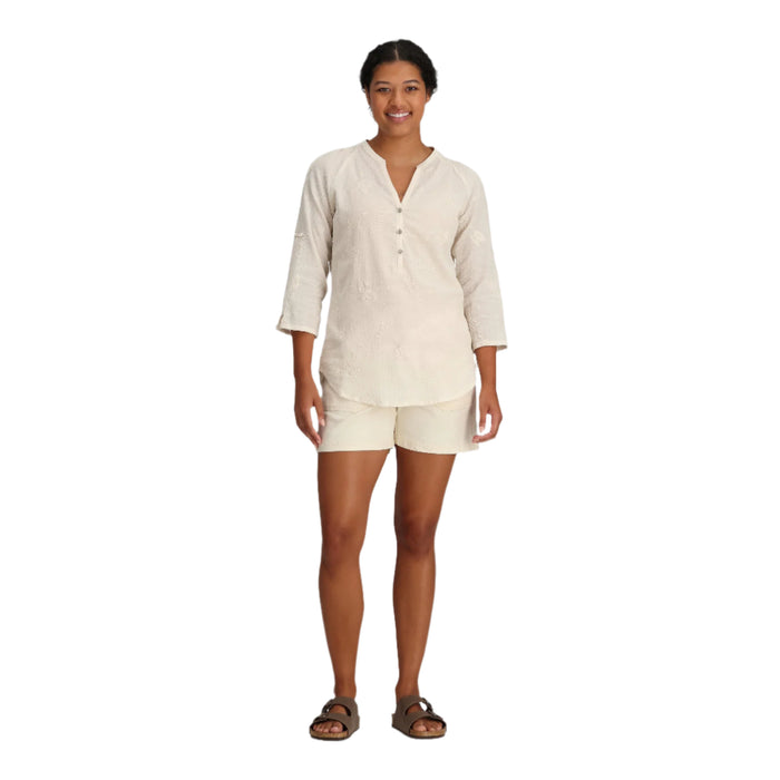 The Women's Oasis Tunic II 3/4 Sleeve in Undyed is a lightweight, breathable button-down made from responsibly farmed preferred cotton. Its classic tunic style with a curved hem offers a flattering fit and extra coverage, ideal for basecamp days or everyday wear. The undyed fabric reduces environmental impact by using less energy, water, and chemicals. Featuring a zip-secure pocket and button closure, this 100% cotton tunic blends comfort, style, and sustainability for your adventures.